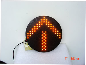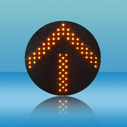Φ200/300/400型黃箭頭信號(hào)燈板 1、高亮度:LED燈適用高亮燈珠,效果更具色彩;