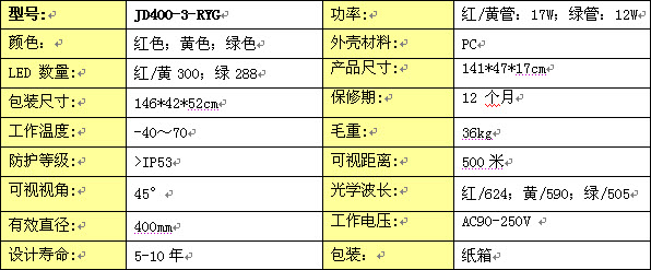 JD400-3-RYG 三單元滿屏組合LED交通信號燈 采用超高亮度發光二極管芯片AlInGaP和InGaN作為產品的光源,低功耗,長壽命,維持產品合理成本。