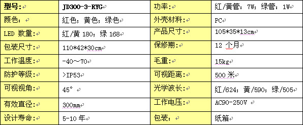 JD300-3-RYG 三單元滿屏組合LED交通信號燈 采用超高亮度發光二極管芯片AlInGaP和InGaN作為產品的光源,低功耗,長壽命,維持產品合理成本。