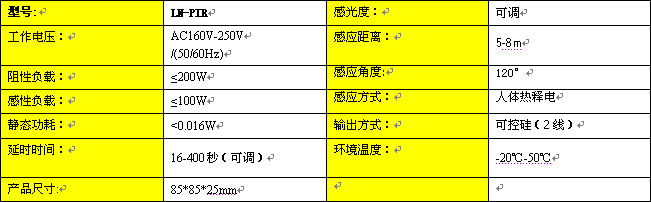 采用單火線控制,自動測光功能技術,出廠設置白天光線強時不感應,也可設置全天感應。